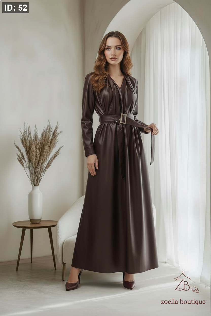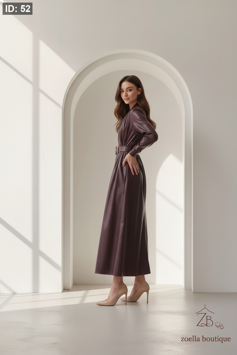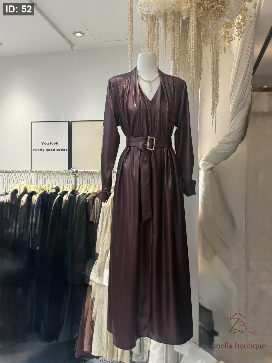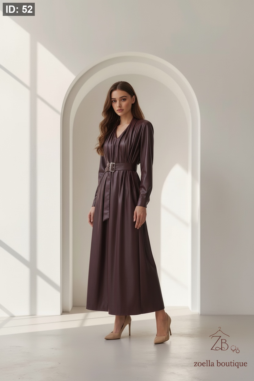 فستان مع حزام قماشة ساتان تقيلة وفريدة من نوعها ✨